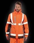 Heavy duty zip through collar with chin guard and zip pull, White colour recycled backing, Soft and supple feel heavier weight fabric, Printed reflective safety band, Stud closing outer storm flap, Removable draw cord hood, Waterproof welded seams, Zipped pockets with reflective trim, Draw cord hem, hang loop and longer length, Adjustable tear release cuff, Matches RS508 waterproof trousersRecycled backing fabric using materials made from reycled plastic bottles and post-industrial waste